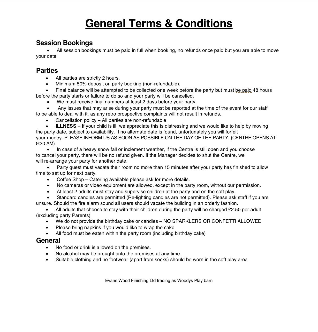 Please be aware we do not allow unoffical partys in our Centre, no balloons, presents or cakes will be allowed in the centre unless you have booked a party.